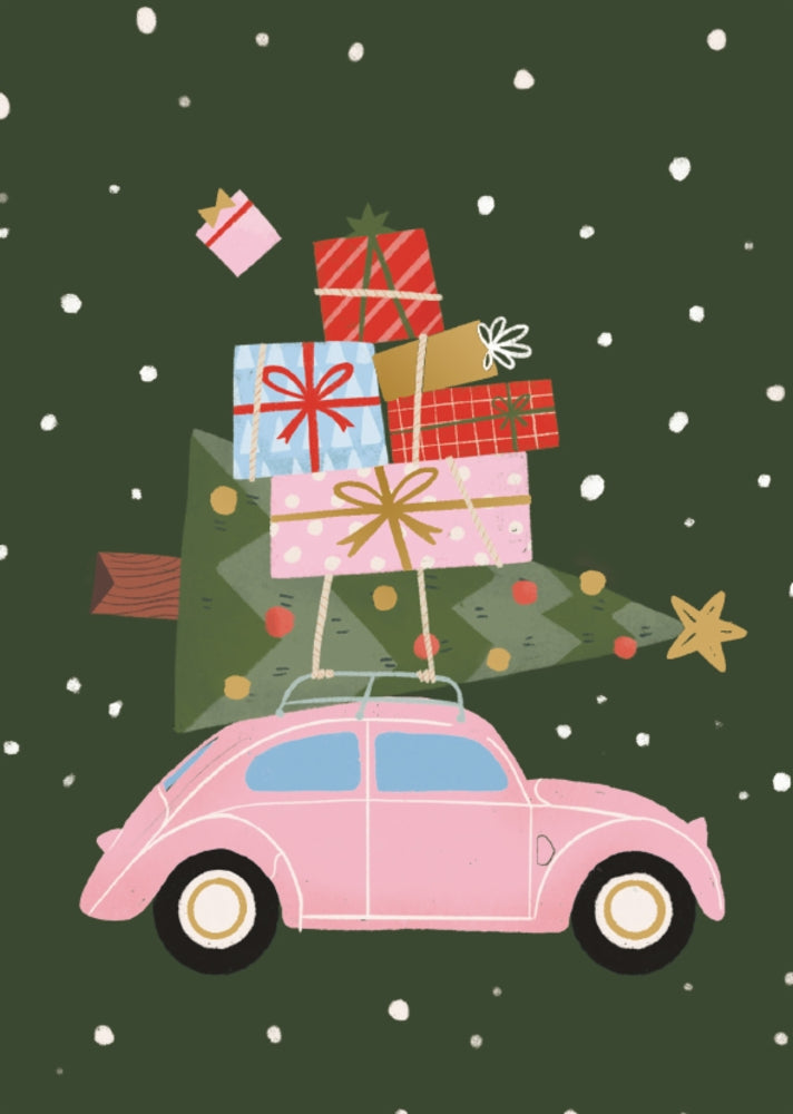 Convey the joy of Christmas with a Christmas card in which the pink Kuplavolkkari is full of gifts and magic! This Christmas card is the perfect choice to bring a smile to the recipient's face and convey the joy of Christmas.