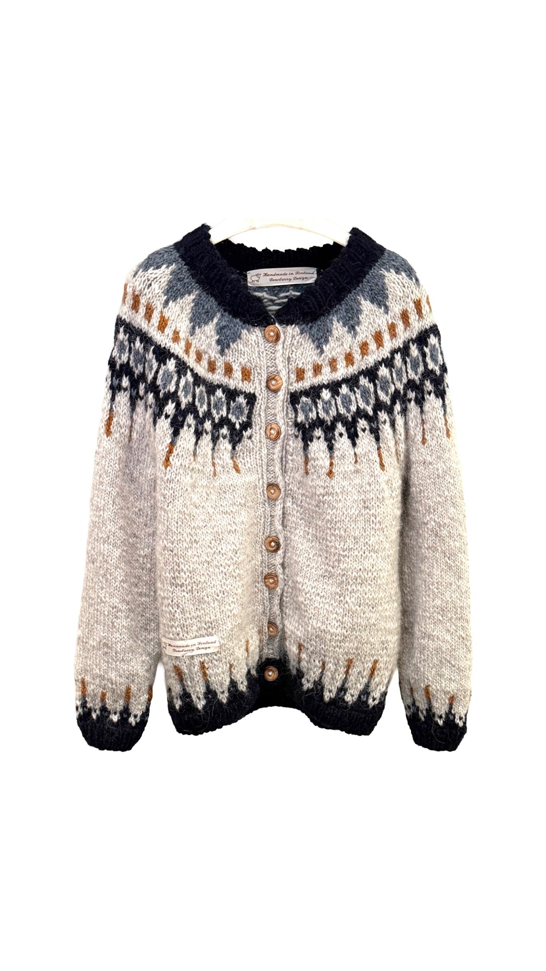 AUTTIJOKI -villatakki lämmittää kylminä päivinä. Neulottu paksusta islantilaisesta villalangasta.